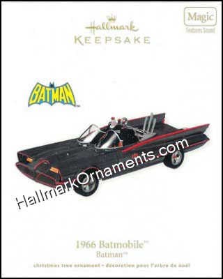 With all of it’s bat-items, the original Batmobile is always ready to help Batman and Robin battle all of the gouls in the streets of Gotham City. This 2011 Hallmark ornament is “equipped” with a Bat-tering Ram, Bat Smoke Screen, Bat-Turn parachutes, the Bat Ray, the Bat Beam, Batcomputer, and of course, the Batphone.