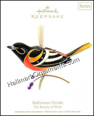 For 2011, a bright orange Baltimore Oriole takes flight. This is the seventh ornament in the very popular Beauty of Birds Hallmark Ornament series.