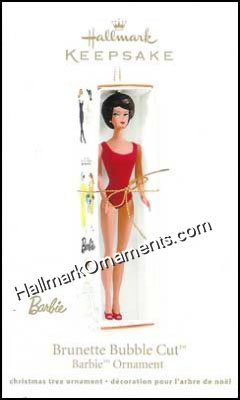 Brunette Bubble Cut Barbie is displayed in an original “Barbie” box.