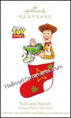 What would you find in a Christmas stocking? This Hallmark Keepsake Ornament, Buzz and Woody, has Woody and Buzz in a stocking that has a sheriff’s star on it. Artist: Steve Goslin