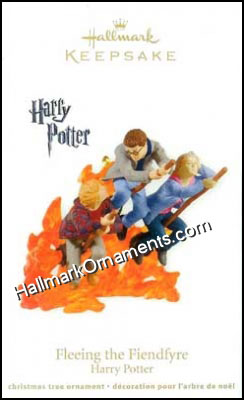 This 2011 Hallmark Keepsake Ornament allws us to watch Harry POtter, Ron, and Hermione flee for their lives to avoid the cursed Fiendfyre flames.