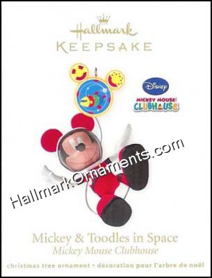 Mickey is floating in space with Toodles from the Mickey Mouse Clubhouse. This Hallmark Keepsake Ornament was released in 2011.