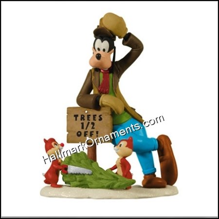 Goofy and Chip’n Dale are ay a cut yopr own tree farm and are getting a bargin. The trees are half off according to a sign that Goofy is leaning on. At the October 2012 Ornament Debut, this Hallmark Keepsake Ornament was one of the four mystery ornaments that was divulged.