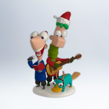 Phineas and Ferb are singing Christmas carols portrayed in this Hallmark Keepsake Ornament.