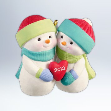 Bundle up your winter romance with a cuddly pair of love-struck snowpeople. Personalize this ornament by writing names on the included stickers, and then hang it from the tree for you and your beau to see year after year.