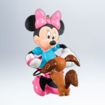 Minnie is playing with a puppy and the puppy’s leash has gotten all tangled up around her but Minnie doesn’t mind. This Hallmark Keepsake Ornament was released in 2012.