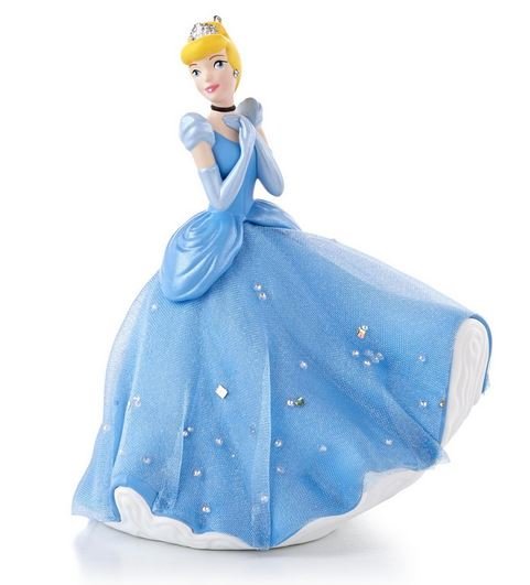 Cinderella is a vision in blue in this Hallmark Ornament. Her flowing blue ballgown is enchanting and she is on her way to the ball in her pumpkin couch to meet the Prince.
