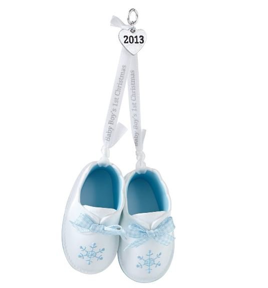 2013 brought with it the tiniest gift?your baby boy. Hang these delicate blue booties from the tree year after year to always remember the special memories of your little one’s first Christmas. On ribbon: Baby Boy’s 1st Christmas