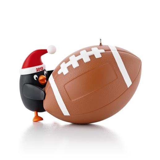 It’s hard not to score a touchdown with an ornament that combines a favorite sport with your favorite sport’s own name. This penguin shows off the super cool football that can be personalized with the enclosed stickers.