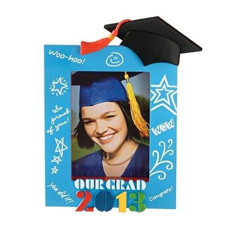 This ornament / photo holder was a 2013 Hallmark Gold Crown exclusive. The bottom of the frame/ornament reads: “Our Grad 2013″