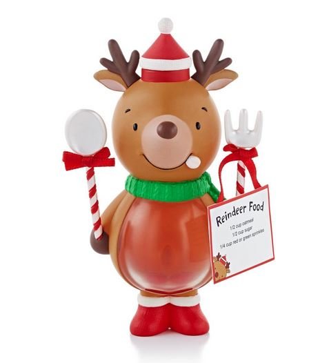 Did you know that reindeer prefer a very special diet to help guide them to the houses of the good girls and boys? Use the recipe to mix up a meal, then put it in the reindeer’s cap for safe-keeping. On Christmas Eve, sprinkle the food on your lawn to help lead Santa’s sleigh to your home. On ornament: Reindeer Food