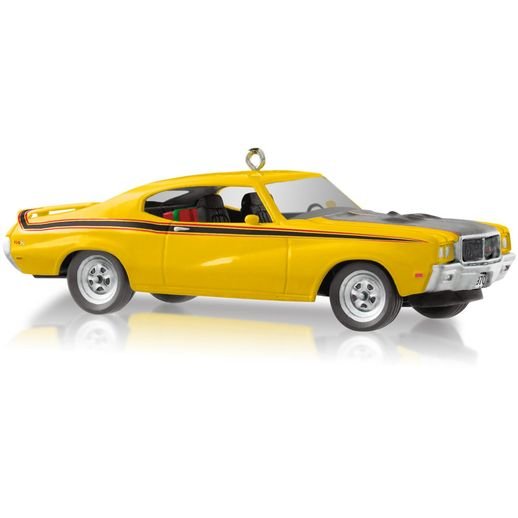 A bright yellow Buick GSX with a black hood and a red stripe detailing.  A spoiler is over the trunk.  24th in the Classic American Cars series