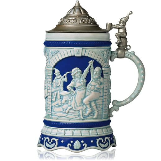 This 2014 Hallmark ornament features a beer stein with a white picture on a blue background.   Artist: Tom Best