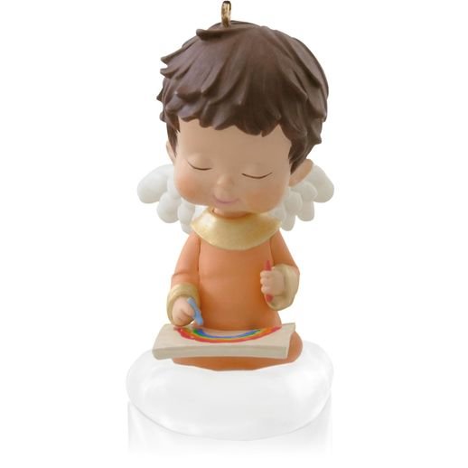 27th in the Mary’s Angels series Drawing a rainbow, this angel is wearing an orange gown and is kneeling on a cloud.