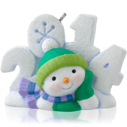 5th in the Frosty Fun Decade series. This cute little snowman with his carrot nose has ‘2014″ across his back as he is lalying down propping up his head with his green mittened hands.