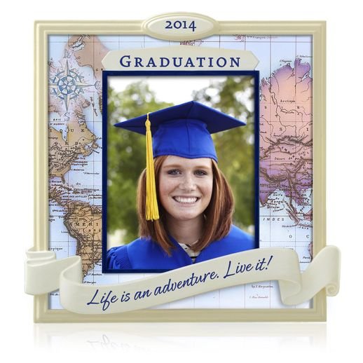 On ornament: Graduation 2014 Life is an adventure. Live it! Photo holder.