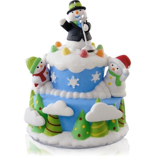 Three snowmen come alive with light and music when you press the button. “Marshmallow World” is sung by Dean Martin. Battery operated. This 2014 Hallmark Keepsake Ornament is a Hallmark Gold Crown Exclusive.