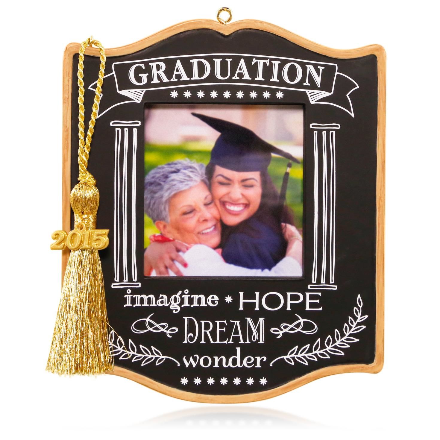 Commemorate your graduate’s special event with this 2015 Hallmark Ornament. Insert your photo to personalize the ornament. Perfect for a High School Graduation or College Graduation.