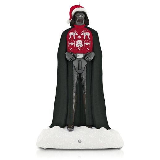 This Keepsake Ornament features Darth Vader in a Christmas sweater and Santa hat. Come close to the tree: The Dark Lord ornament will sense your movement and deliver a Christmas message. Dated 2015. This ornament will first be available during the 2015 Hallmark Debut Event, October 3, 2015.