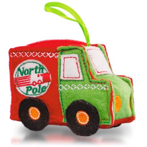 Special delivery! This plush North Pole express truck pairs with the fabric Christmas tree as a delightful accessory for your child. The ornaments are hung on colorful buttons and are soft, cuddly and safe. Sure to be a favorite year after year! (Tree sold separately.)
