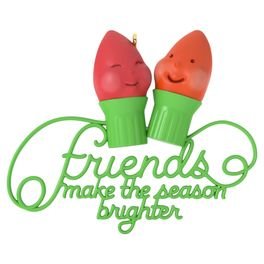 On ornament: Friends Make The Season Brighter. Arrives for Debut.