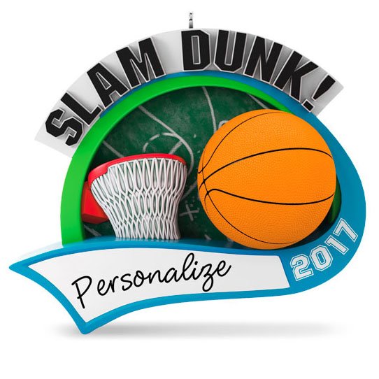 Stickers included for personalization. On ornament: SLAM DUNK! 2017.