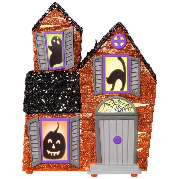 This haunted house lights up when connected to the Hallmark Magic Cord.