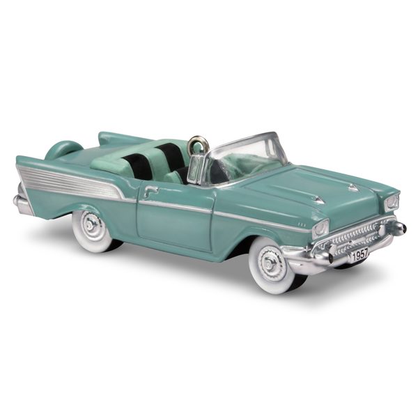 Miniature. Each ornament in this new series will feature a different classic car each year. Wheels turn. Metal. Dated.