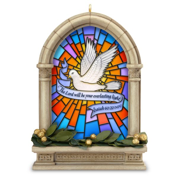 On ornament: The Lord will be your everlasting light. Isaiah 60:20 Attaches to a light string for optional lighting effect. Dated.